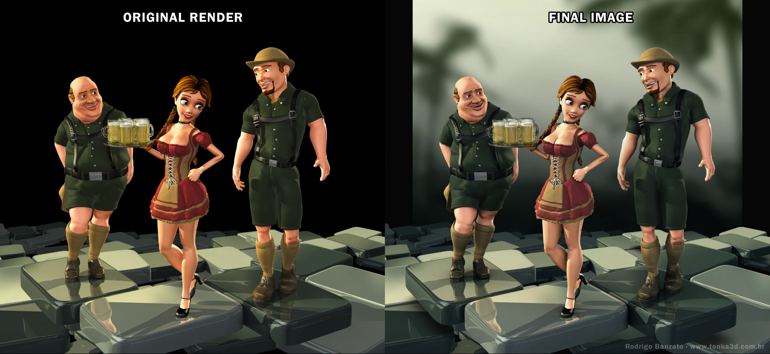 E finalmente, aqui você pode ver a diferença entre a imagem original e a renderização e a imagem final com um plano de fundo. É legal ver o que podemos fazer com alguns de nossos antigos modelos 3D. Não os deixe morrer no seu disco rígido – tire-os e reinvente-os!