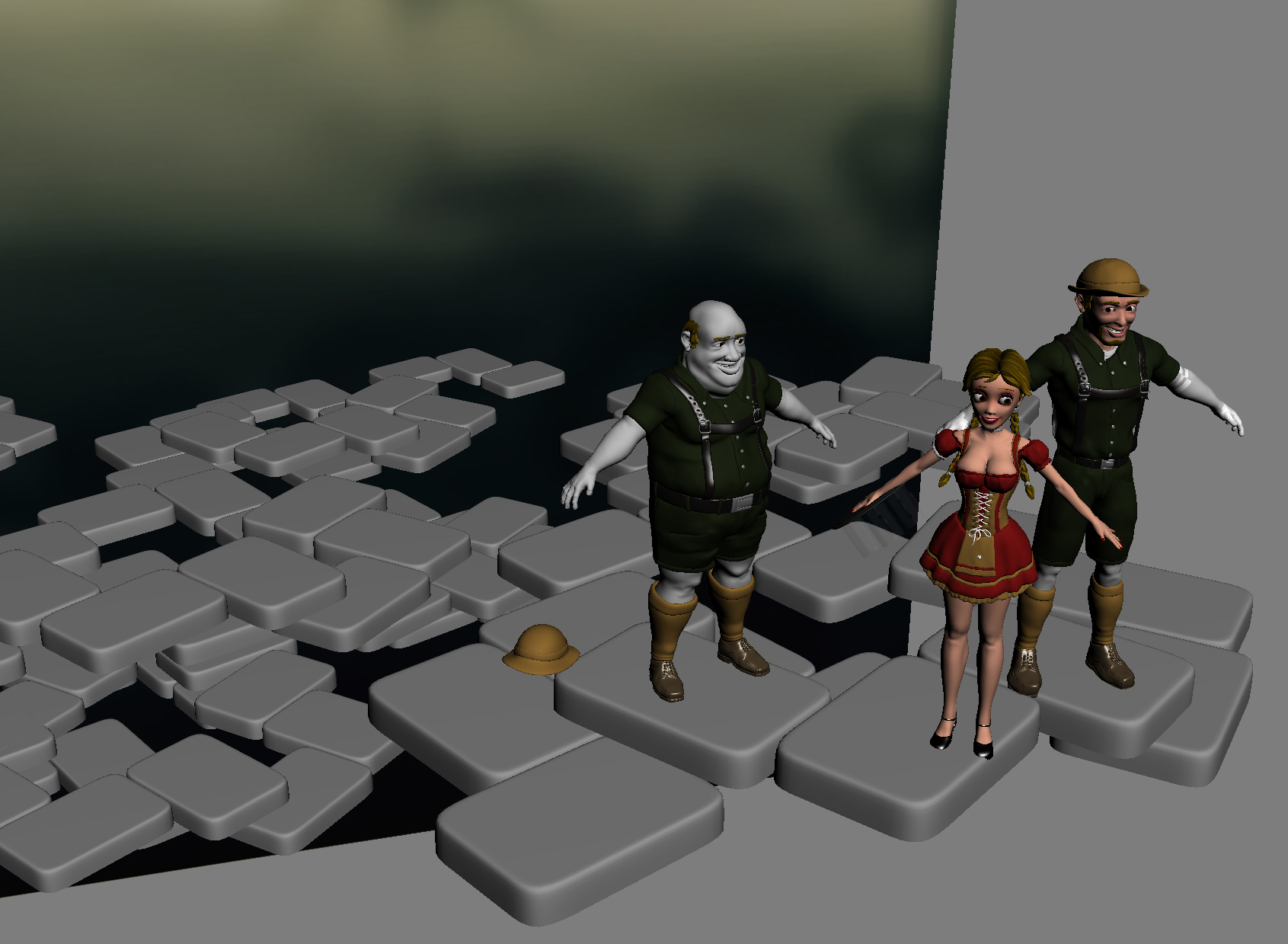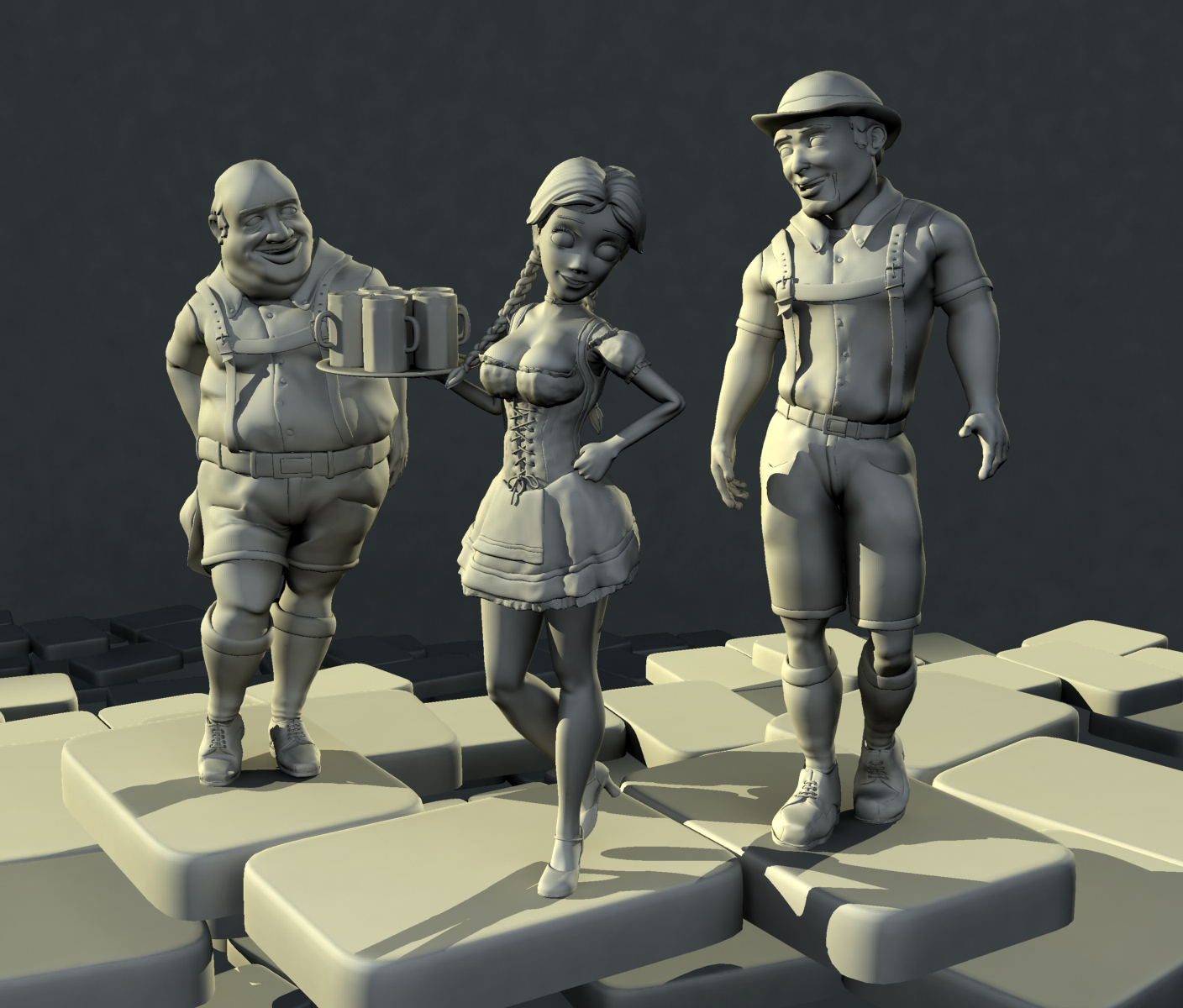 Quando penso em termos de animação, crio as coisas a serem animadas. É claro que seria muito interessante animar essa cena, mas com essa peça, eu estava muito mais focado na modelagem e texturização dos personagens.