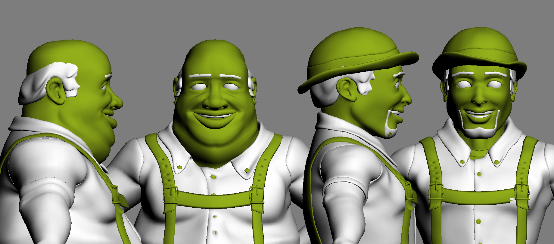 Para os modelos masculinos era a mesma coisa, mas as roupas e os corpos eram da mesma malha. Eu usei malha do rapaz mais novo para criar o homem maior; a seleção suave do 3ds Max ajudou muito nisso.