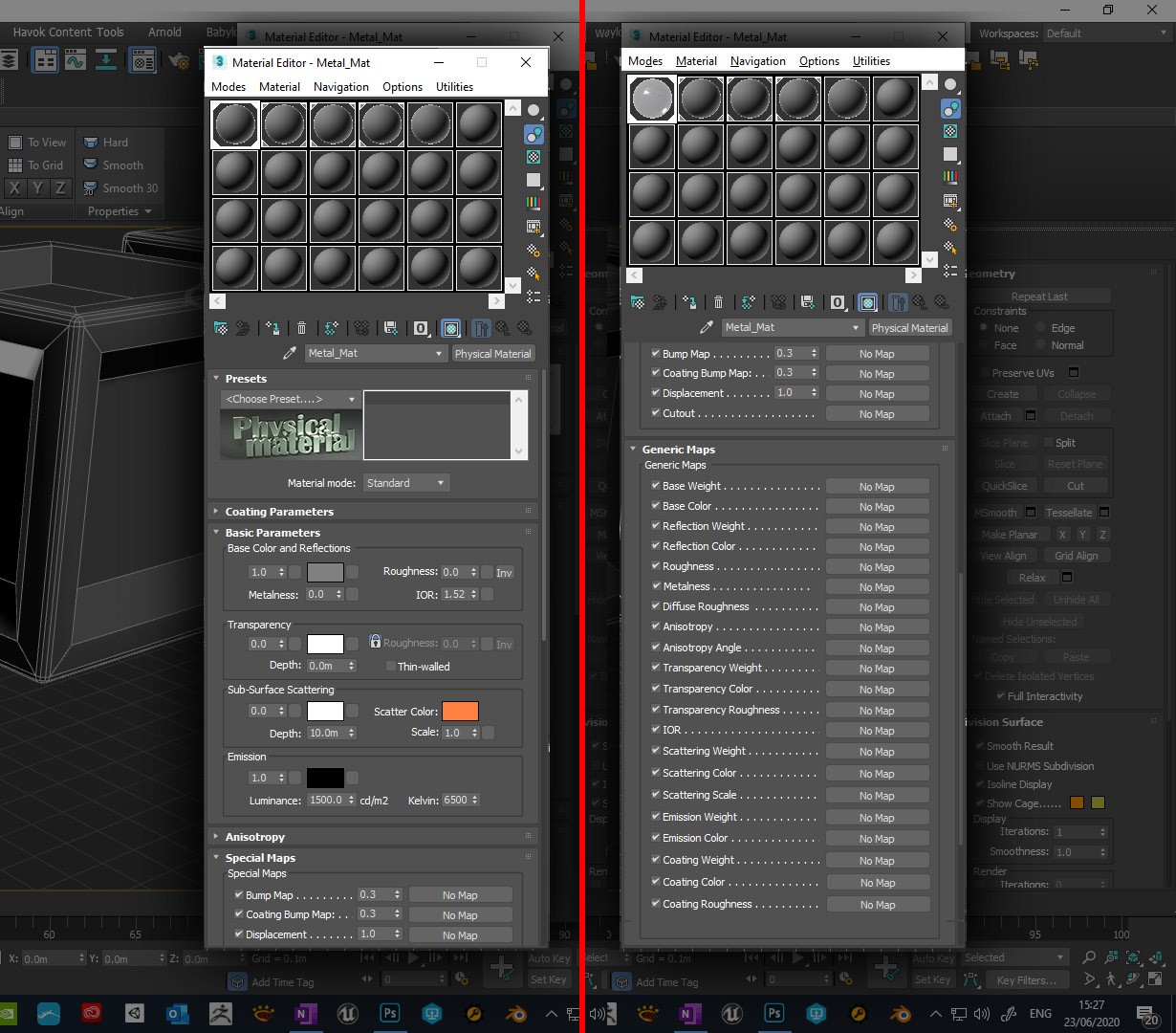 No 3ds Max, o processo de configuração de um material PBR é descrito a seguir.