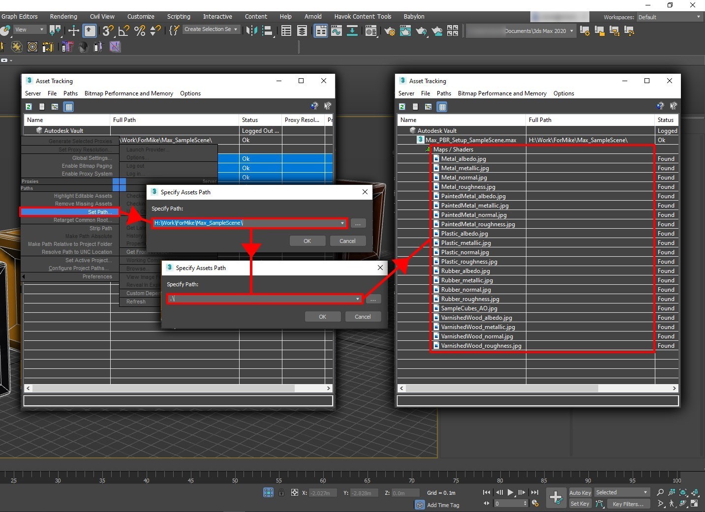 Se os caminhos de textura para o ativo estiverem apontando para uma unidade local ou uma localização/um caminho absoluto, eles não serão carregados na cena se estiverem abertos em outro computador, mesmo que o arquivo .max esteja localizado na mesma pasta das texturas. Tornar os caminhos de textura relativos no 3D Studio Max resolve esse problema e é bem simples.